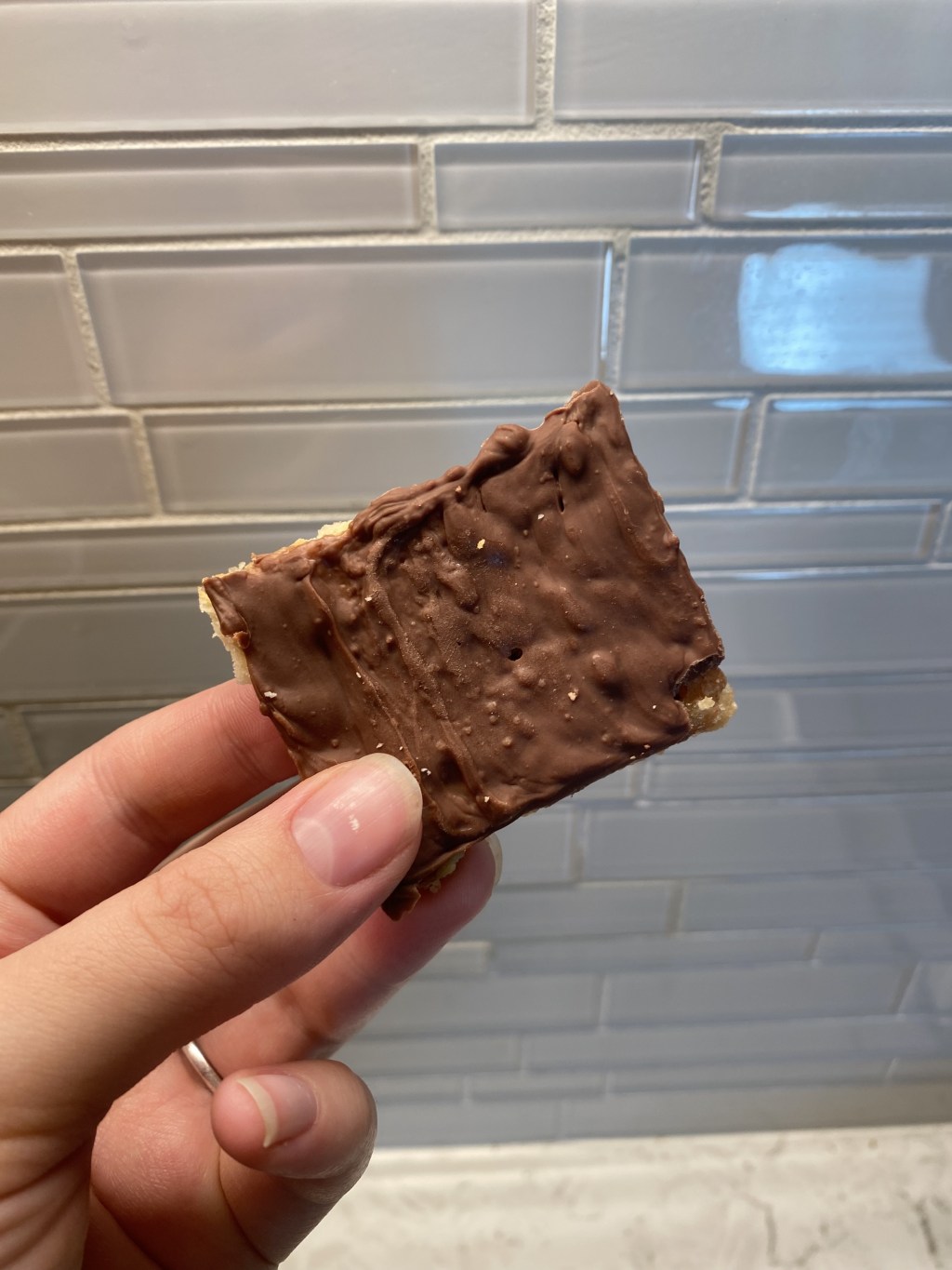 6. Turn off oven. Put the tray back in to melt the chocolate for a couple minutes.